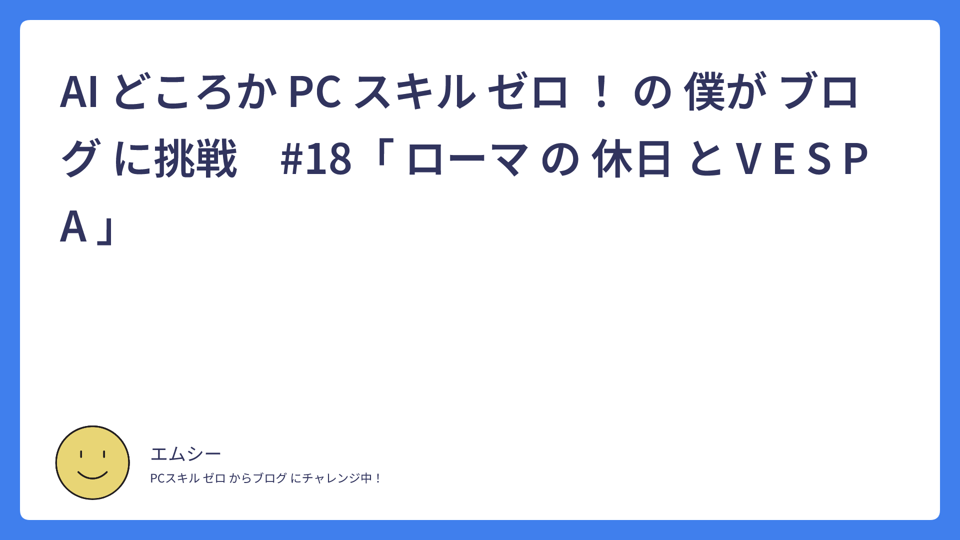 AI どころか PC スキル ゼロ ! の 僕が ブログ に挑戦 #18「 ローマ の 休日 と V E S P A 」 2025.08.03 Word Press ブログ 体験記 エムシー エムシーブログ
